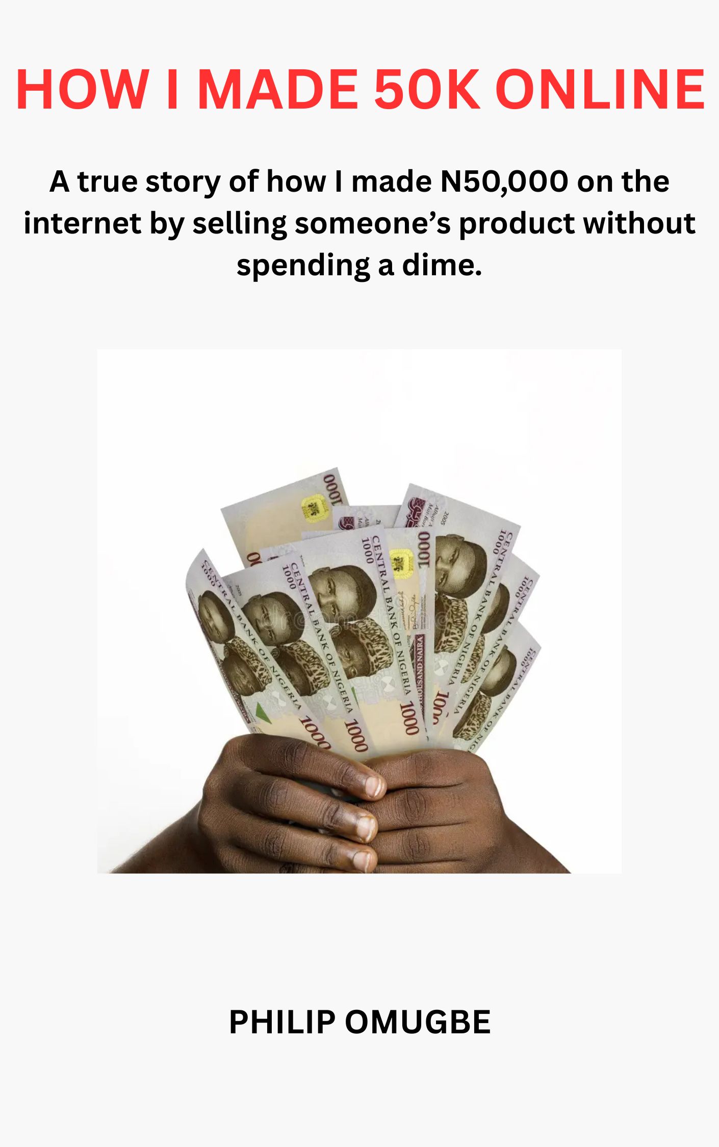 In this very short e-book, I have shared my experience on how I sold a physical product on behalf of a friend online and I made N50,000 without leaving my house. I didn’t spend any money on advert; I just uploaded the product image and within 10 days it was sold. I have shared my experience to encourage you that it is possible to earn money online even if you don’t own the product.